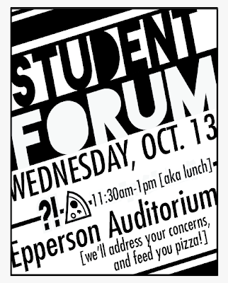 as the communications officer for student assembly, i'm responsible for generating the signage and posters for our events. for this student forum poster, i used one of mckenzie's/my simple random line compositions in which to set my text! i also left some of the lines as additional graphic elements to add interest. i'm not certain it could stand up to a rigorous critique, but as a quick eye-grabbing informational bulletin, i think it's pretty okay.