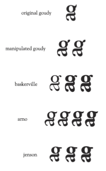so the next step was to try to resolve the funny pointy horn ear on the g... so i tried out some new fonts.